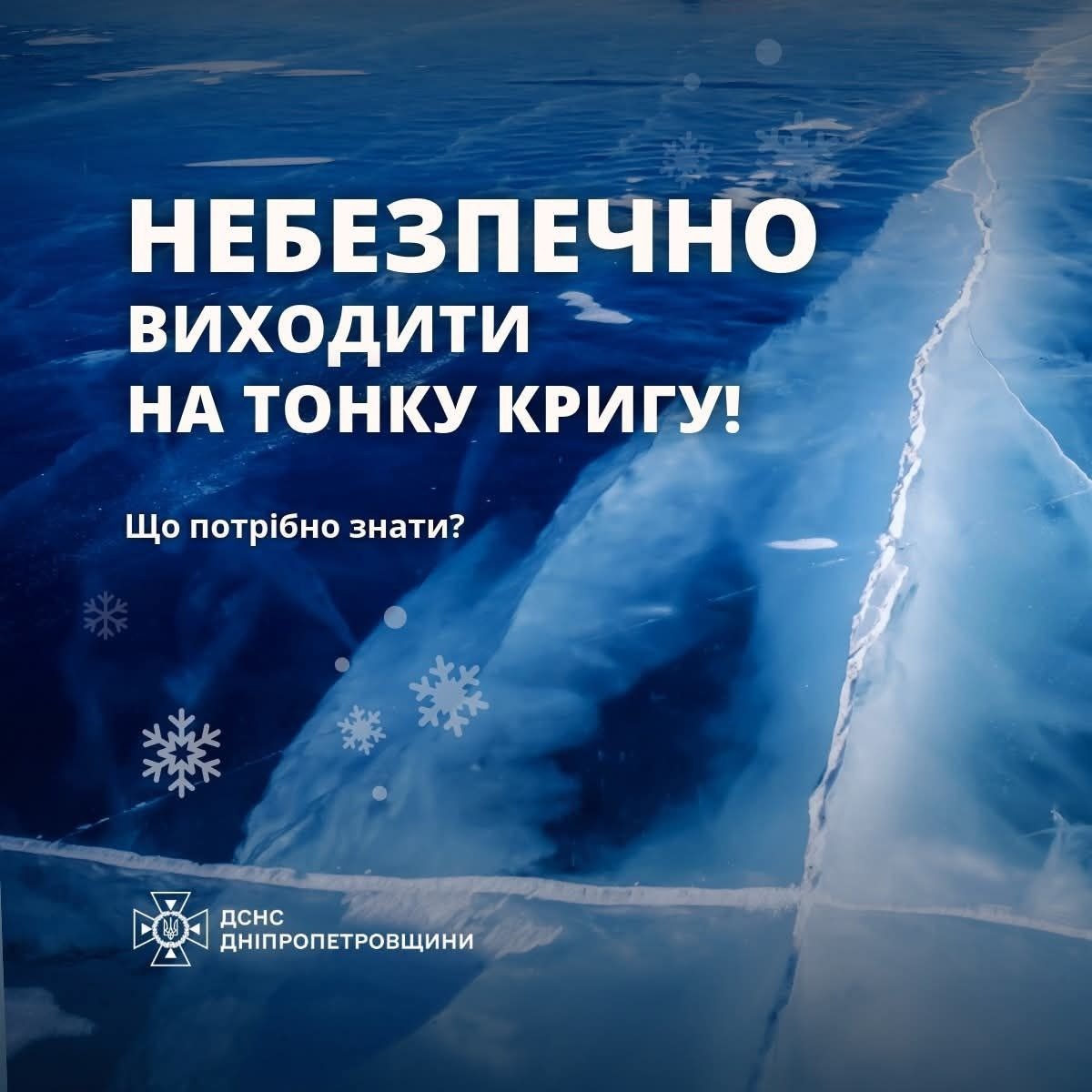 ?? ПАМ’ЯТАЙТЕ! Під час весняної відлиги лід не тріщить, а може миттєво розсипатися під вагою людини. Будьте пильними та обережними!