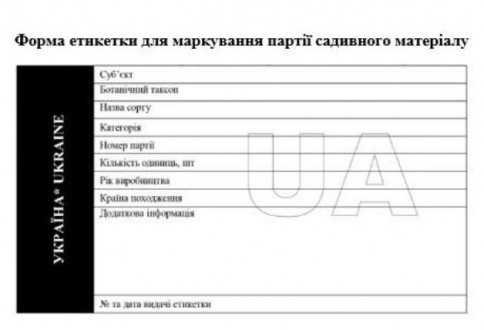 Під час здійснення реалізації, садивний матеріал та продукція розсадництва повинна бути промаркована і мати наступні дані: