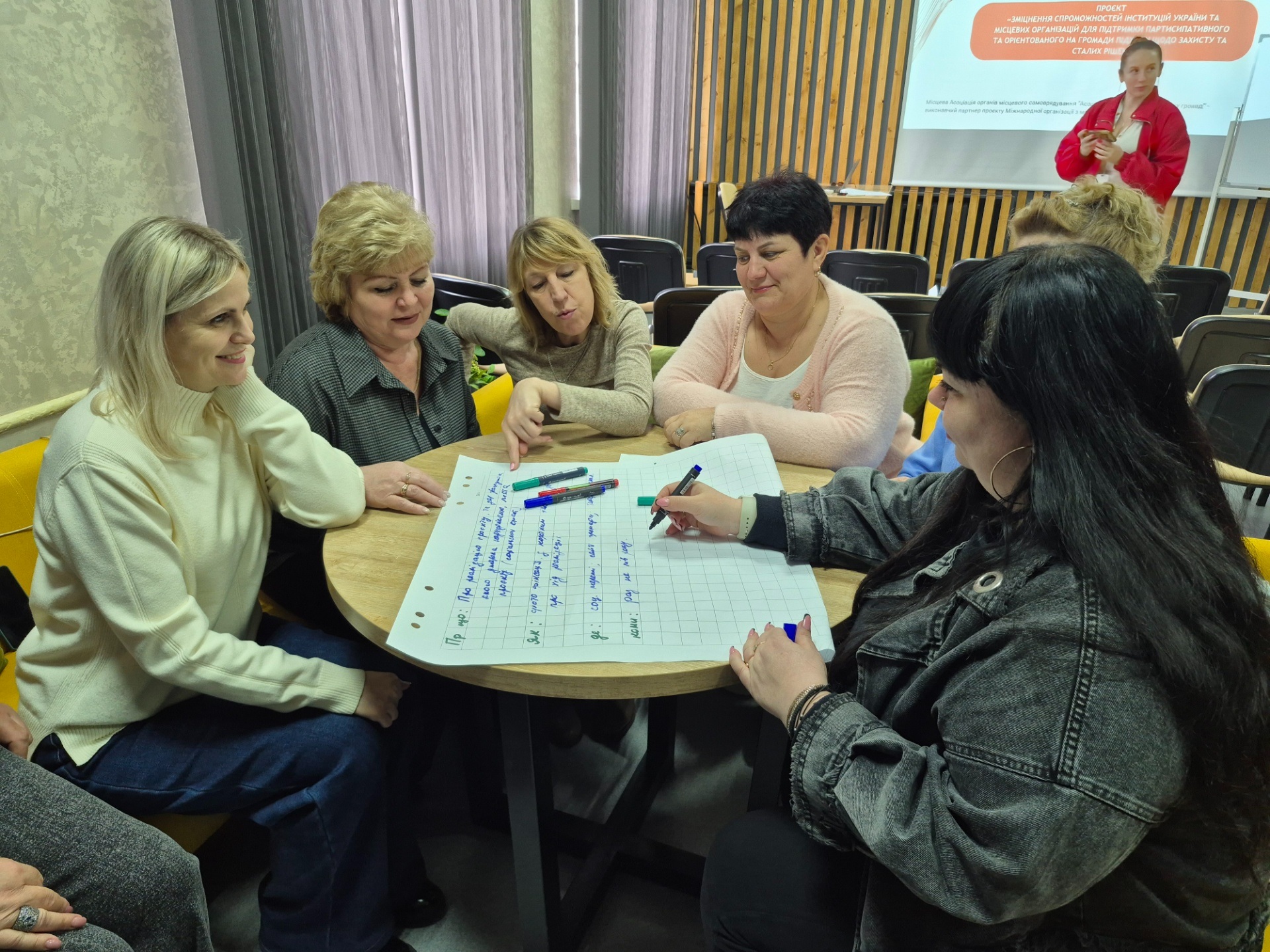 Під час сесій представники органів місцевого самоврядування, закладів освіти та охорони здоров’я, громадських організацій та активні мешканці громади спільно працювали над напрацюванням механізму громадського моніторингу реалізації двох важливих для громади проєктів: